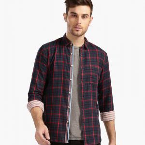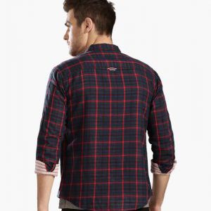 Men Navy & Red Checked Slim Fit Casual Shirt