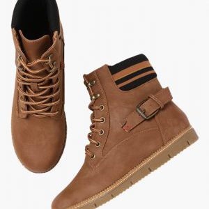 Women Brown Solid Synthetic Mid Top Flat Boots